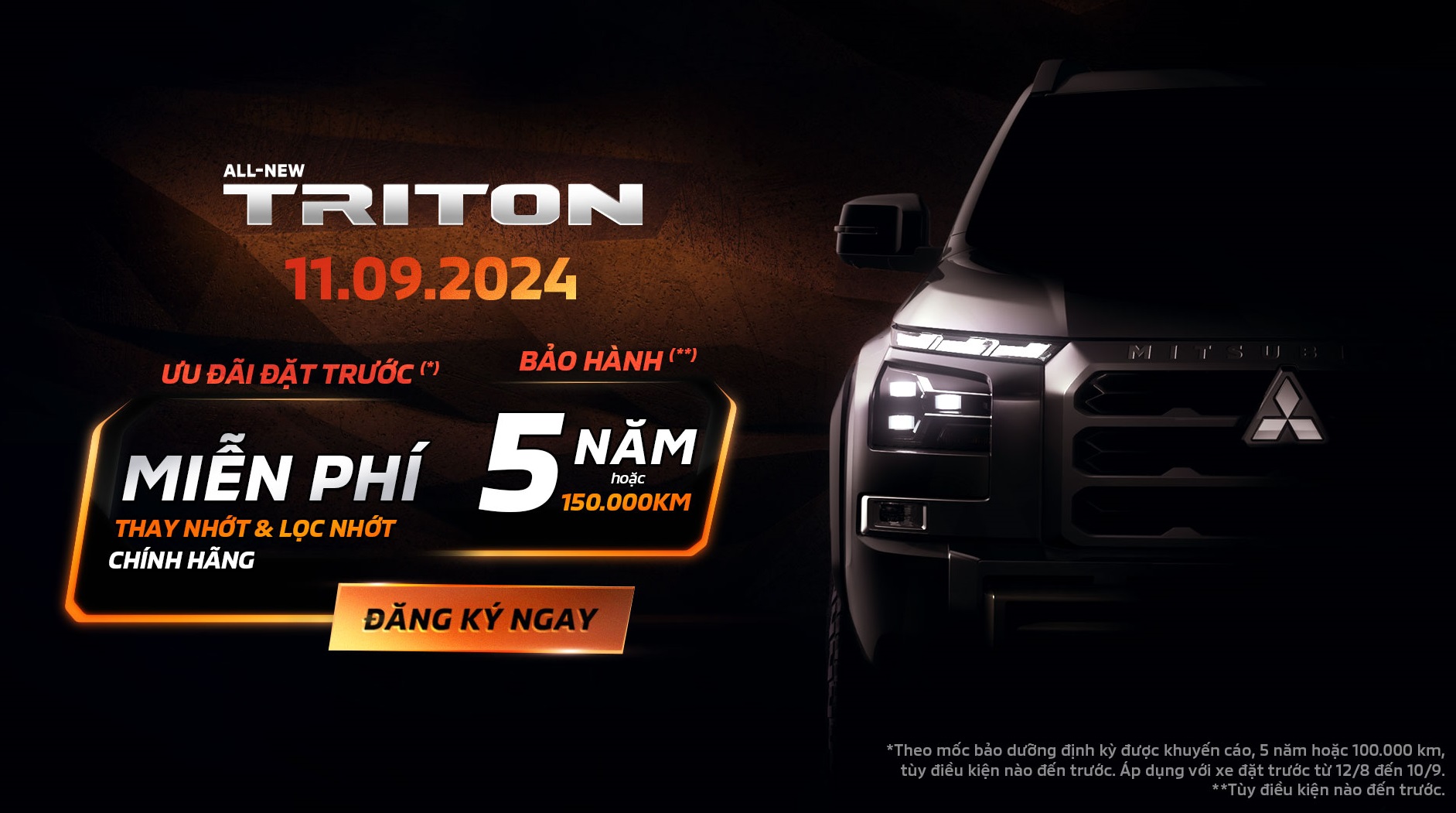Từ ngày 12/08/2024 đến ngày 10/09/2024, Mitsubishi Quảng Ngãi triển khai chương trình ưu đãi dành cho khách hàng đặt hàng trước All-New Triton 2024, cụ thể: