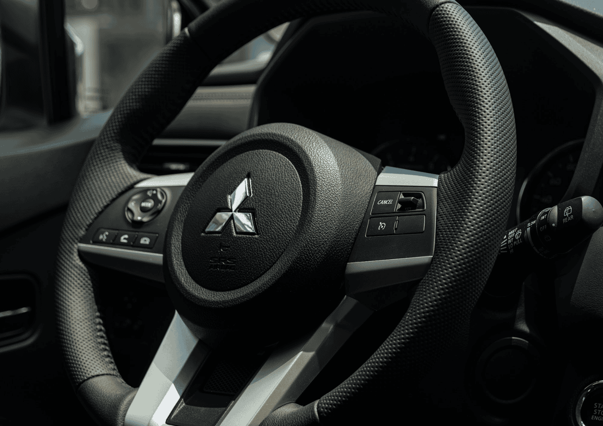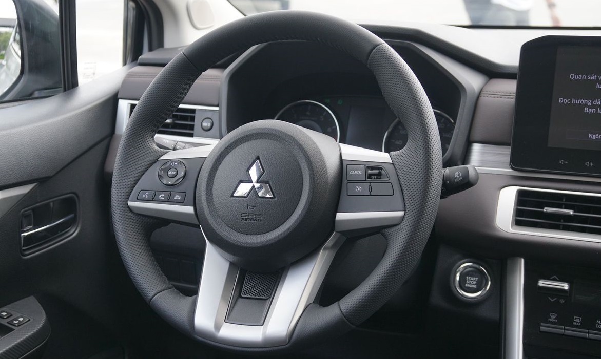 Vô lăng trên Xpander 2024 vẫn được bọc da trên bản AT, sử dụng thiết kế 3 chấu to bản truyền thống của những mẫu xe nhà Mitsubishi. Đặt ngay phía sau là cụm đồng hồ lái kết hợp giữa kiểu hiển thị cơ và màn hình đa thông tin, cung cấp đầy đủ các thông số vận hành cho người lái trong một giao diện hiện đại và trực quan.