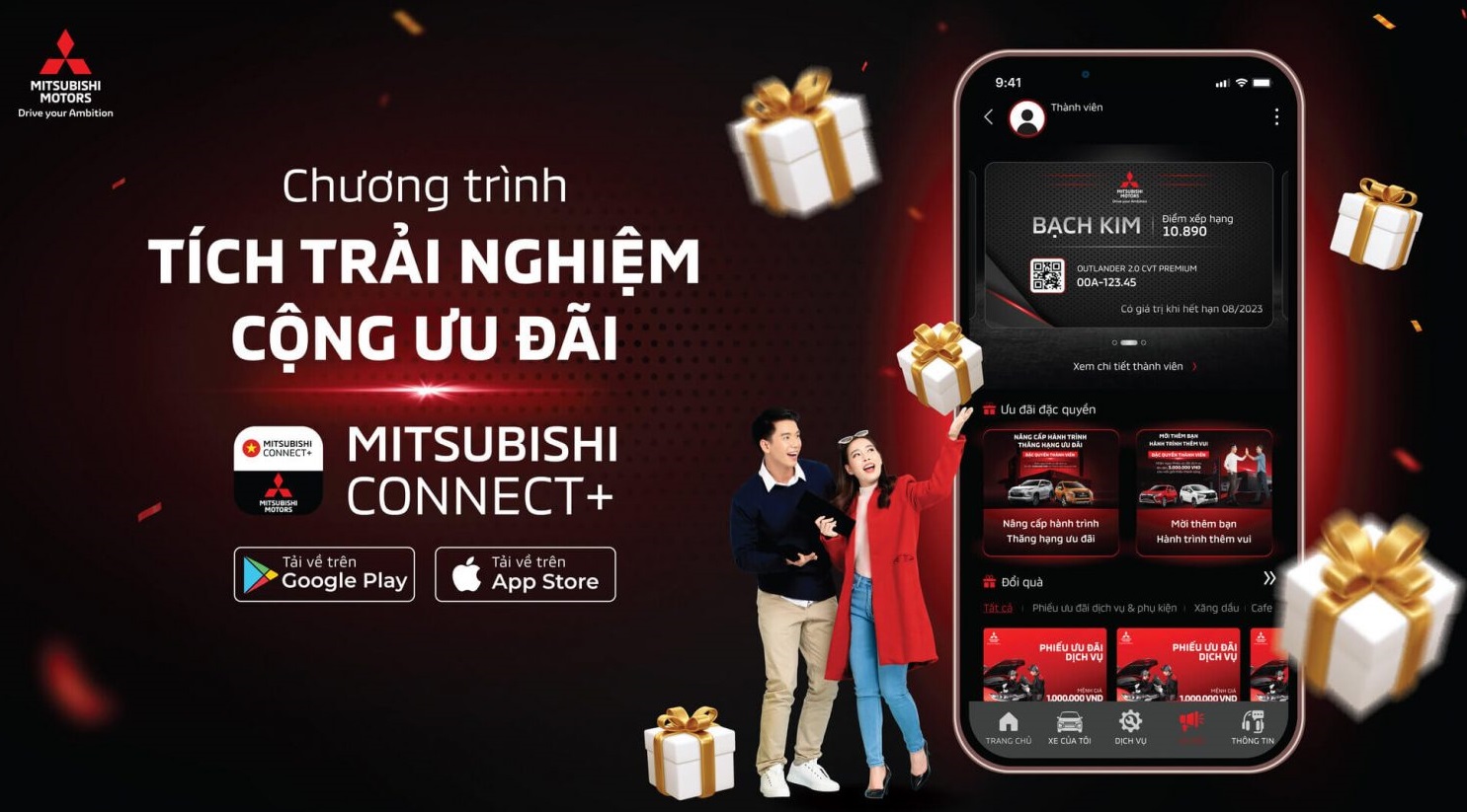 Bên cạnh ứng dụng Mitsubishi Connect+, Mitsubishi Motors Việt Nam còn giới thiệu chương trình khách hàng thân thiết dành riêng cho chủ xe ô tô Mitsubishi. Theo đó, khách hàng sẽ được hoàn từ 2 – 5% chi phí thanh toán sau mỗi lần sử dụng dịch vụ như thay thế phụ tùng, dầu nhớt… chính hãng. Điểm thưởng có thể được tích lũy bằng nhiều cách như sử dụng dịch vụ chính hãng, giới thiệu bạn bè, người thân mua xe Mitsubishi hoặc khách hàng mua xe mới để thay thế cho chiếc xe hiện tại của mình. Tương ứng với số điểm thưởng nhận được, khách hàng có thể lựa chọn đổi sang Phiếu ưu đãi dịch vụ cho lần sử dụng dịch vụ kế tiếp, hoặc Phiếu quà tặng Gotit cho mục đích mua sắm, giải trí,…