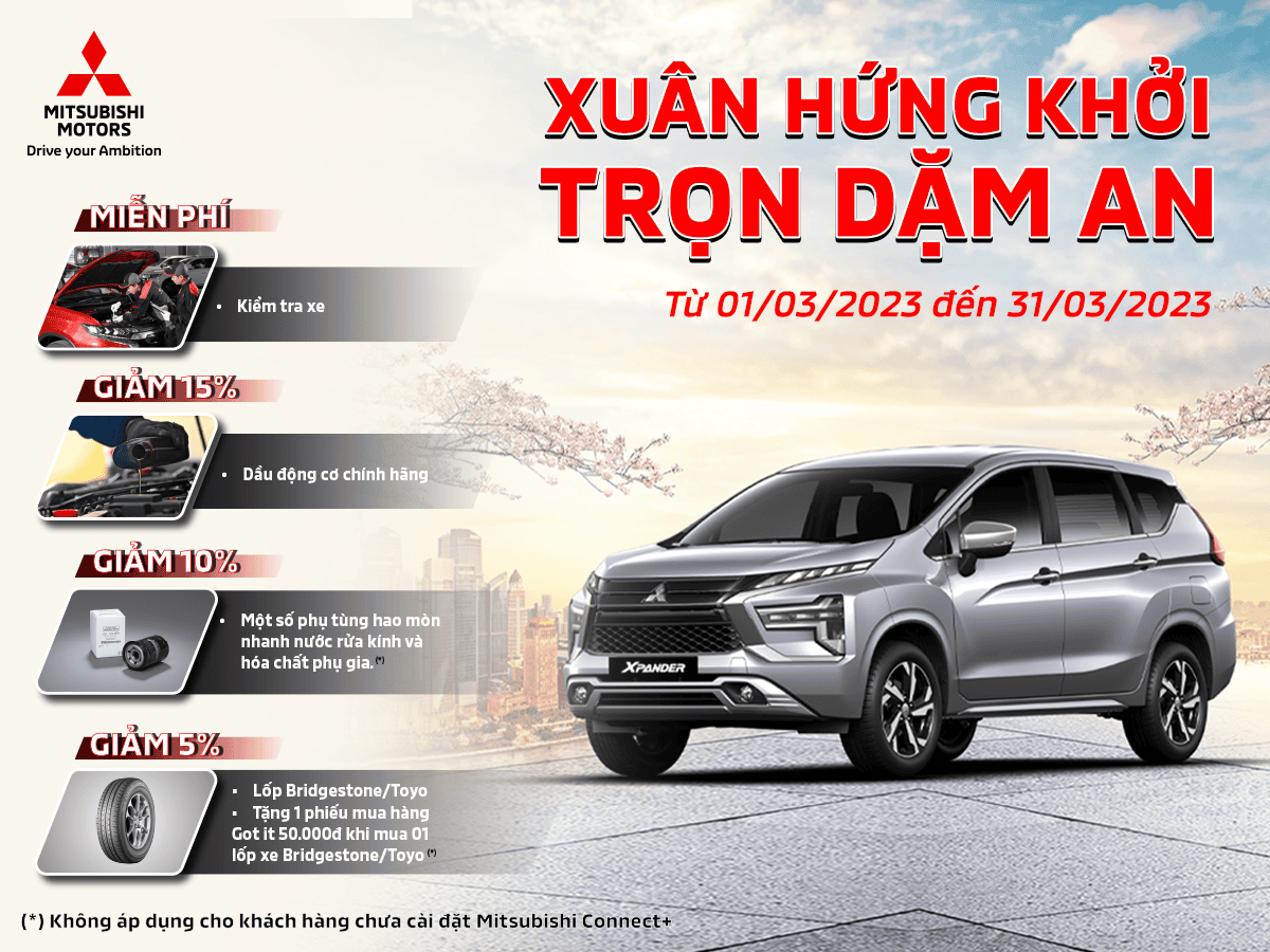 Với mong muốn mang đến cho khách hàng những trải nghiệm sản phẩm và dịch vụ sau bán hàng chuyên nghiệp nhất, cũng như đáp lại sự ủng hộ của quý khách dành cho thương hiệu Mitsubishi. Từ ngày 01/03/2023 đến ngày 31/03/2023, Mitsubishi Motors Việt Nam (MMV) triển khai chương trình “CHIẾN DỊCH CHĂM SÓC KHÁCH HÀNG DỊCH VỤ THÁNG 03/2023”.