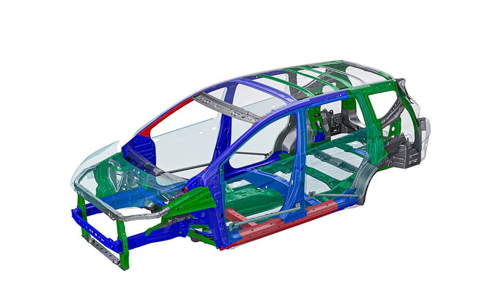 Công nghệ khung xe RISE của Mitsubishi sử dụng thép gia cường, được thiết kế để hấp thu va chạm và phân tán lực để bảo vệ tài xế và hành khách.