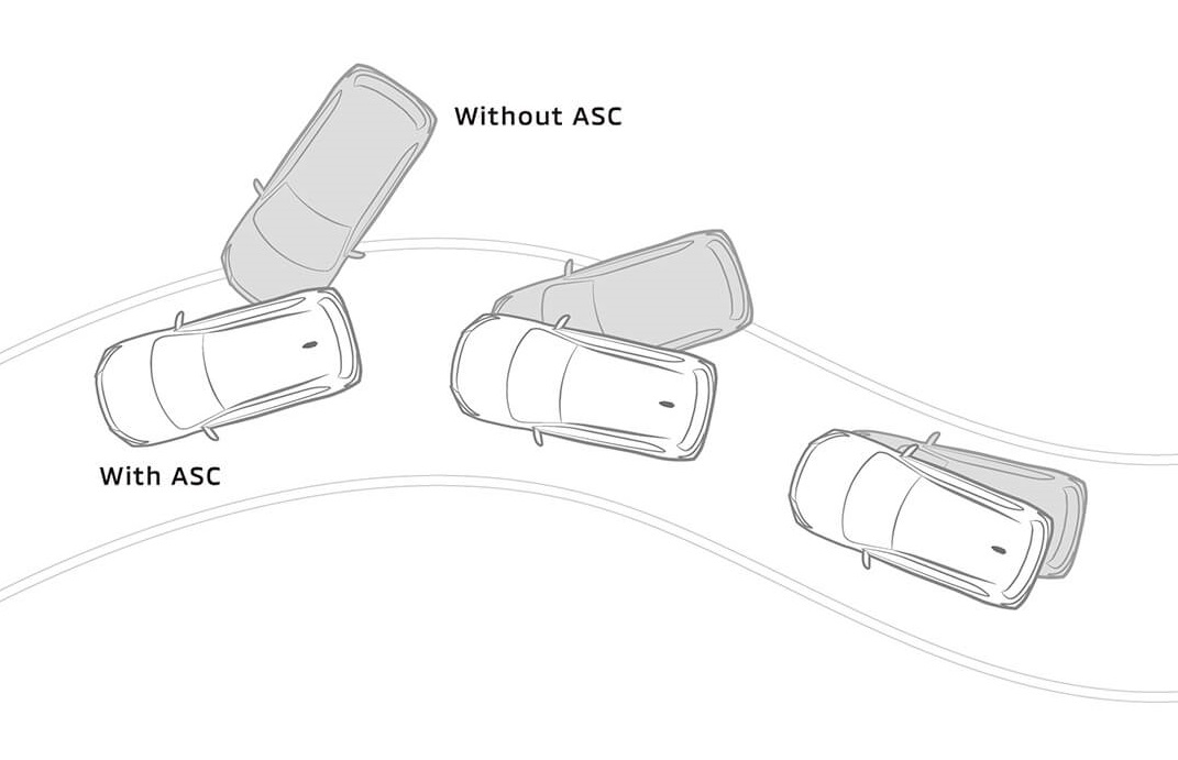 Sử dụng các cảm biến để phân tích chuyển động và độ trượt của xe. Bằng cách kiểm soát công suất động cơ và lực phanh lên từng bánh xe riêng biệt, hệ thống ASC giúp duy trì sự ổn định của xe ngay cả trong điều kiện trơn trượt.